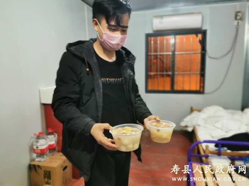 现场值班的社区工作人员称,疫情值守期间,大家24小时上岗,老百姓们也非常支持他们的工作,更有热心群众用实际行动送来关爱。经过多方询问,得知为通淝门执勤人员送夜宵的小伙子名叫洪宁,今年29岁,在寿县商贸公司工作,为了给各卡点的工作人员送去一份暖心宵夜,洪宁和妻子总是忙碌到很晚才休息。除了通淝门卡点外,洪宁还自驾给北门外凤台方向检查站,北门口大桥检查站,南门口检查站,淮南方向二道坝检查站,西湖花园A区检查点送餐。