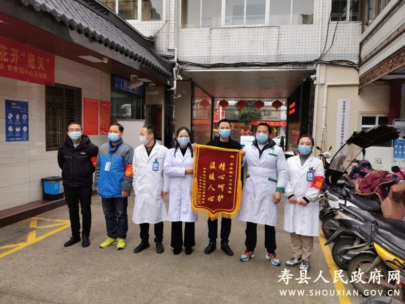 3月1日上午,寿县新城区天玺国际城居家隔离人员周某及亲属带着写着“精心呵护、温暖人心”8个烫金大字的锦旗,来到寿春镇中心卫生院表达真诚的谢意。