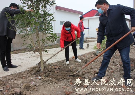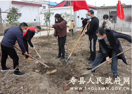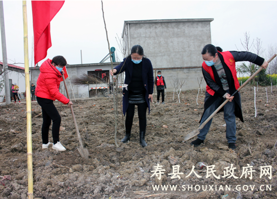 参加植树的党员志愿者与当地村民一道,有的挥锹铲土、有的挖坑栽树、有的扶苗填土,一派忙碌景象。被评为全国“最佳志愿服务组织”的寿县小红帽爱心志愿服务队参加当天的植树活动。